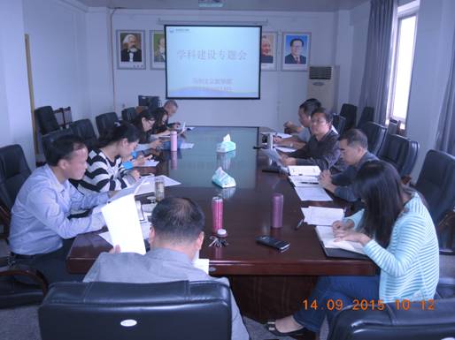 (本网讯 蓝文思、张建军供稿)2015年9月14日上午10:00,马列主义教学部召开了学科建设专题会议。会议由马列主义教学部主任敖以深主持,王忠奎副书记和龙江副主任出席了会议,部门副高以上职称人员、教研室负责人、教务科、办公室人员及党支部负责人参加了此次会议。