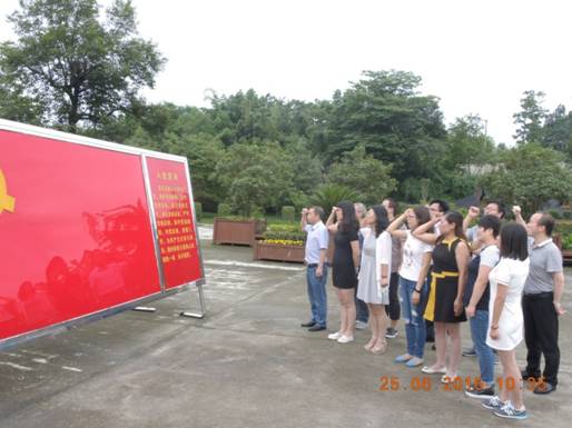 本网讯(蓝文思 张建军)根据校党委副书记宋广强教授要求的“利用爱国主义示范基地加强实践教学”的要求,为回顾党的光辉历程,重温入党誓词,加强教职工党员爱国主义教育,在建党95周年之际,马列部党总支于6月25日开展了“重温入党誓词暨接受爱国主义教育活动”。
