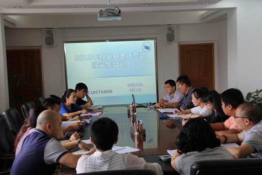 2015年9月1日13:00, 教学质量评估与监控中心在第一会议室对2015年教学状态数据采集归口部门数据填报人员作了数据采集培训。会上, 数据采集培训老师夏黄晶对数据采集的报送顺序、时间节点、数据编号等需要注意的问题,数据采集的工作流程、数据填报规范做了详细介绍。最后,对各部门数据填报人提出的问题详细解答。